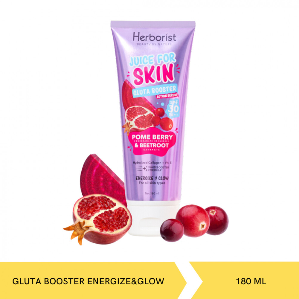 JUICE FOR SKIN GLUTA BOOSTER LOTION SERUM dengan SPF 30 PA+++ yang menjadikan kulitmu tidak hanya glowing dan juicy, tapi juga terproteksi dari paparan sinar UVA & UVB._x000D_