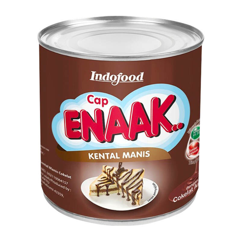 Cap Enaak Cokelat Susu Kental Manis [370 g]merupakan susu kental manis yang terbuat dari susu sapi segar. Kaya akan kalsium sumber fosfor serta Vitamin A, B1, Kolin dan Vitamin D3 yang baik untuk tubuh. Baik untuk digunakan untuk kebutuhan sehari-hari.